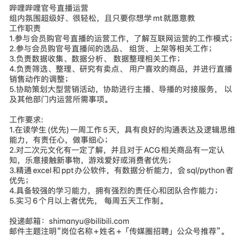 就业指导丨哔哩哔哩官号招聘运营实习生!
