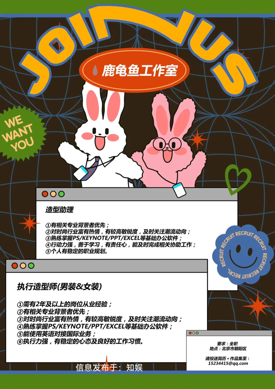 就业指导丨鹿龟鱼工作室招聘造型助理、执行造型师