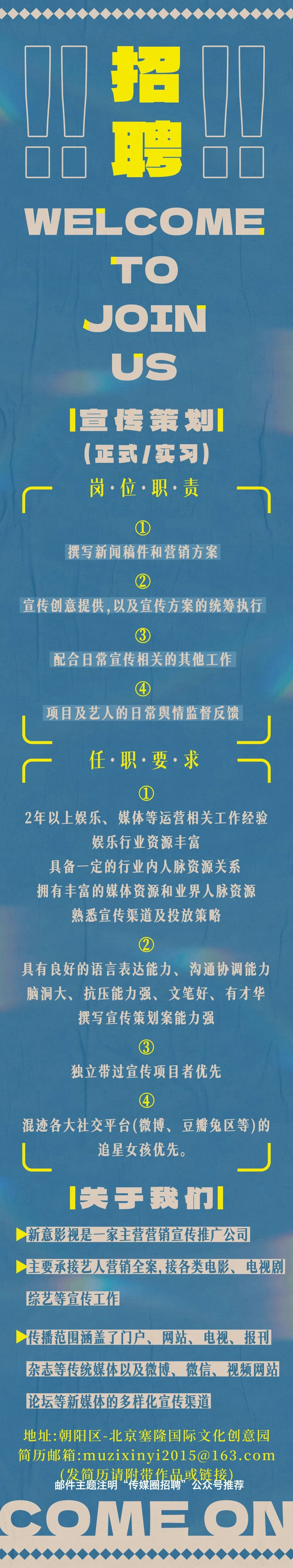 就业指导丨新意影视招聘宣传策划(正式/实习)