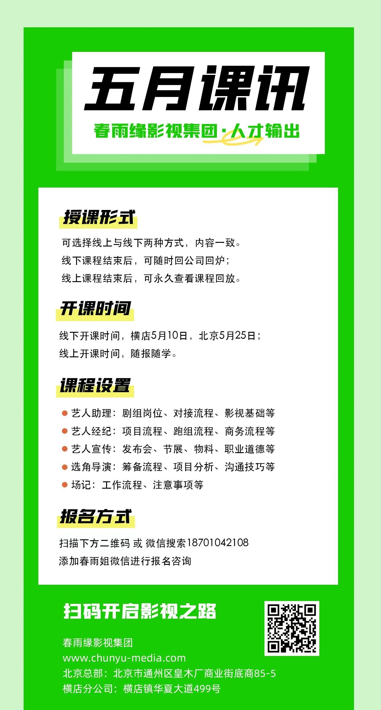 就业指导丨春雨缘影视艺人助理/经纪培训班,5月份课程可以报名啦