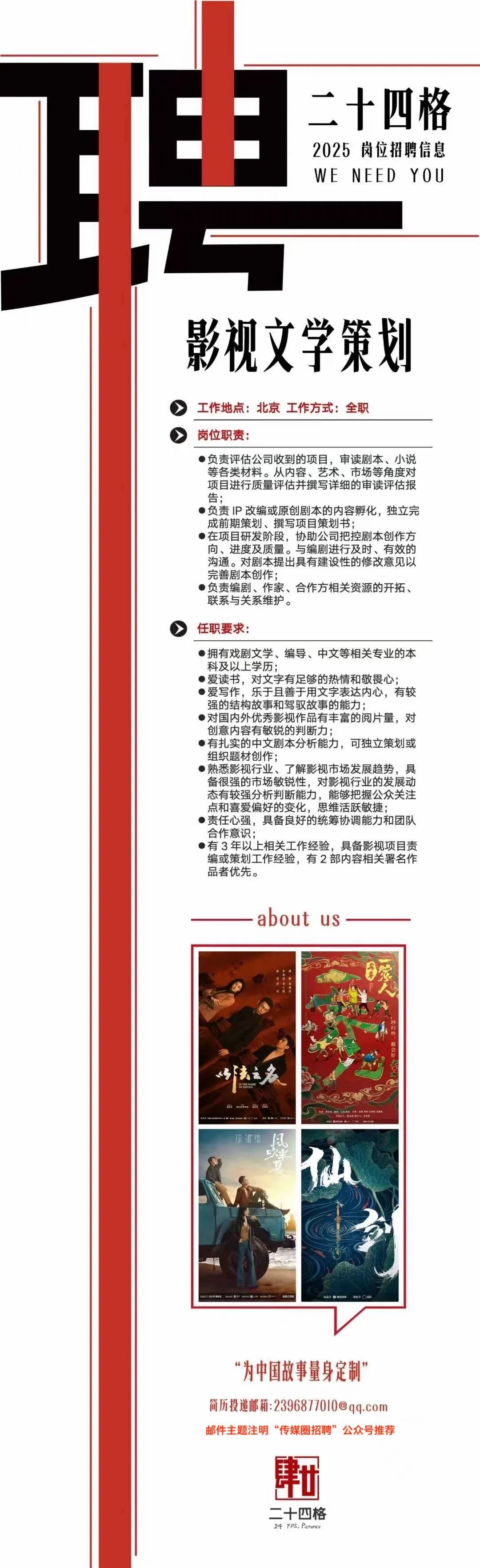就业指导丨二十四格招聘影视文学策划!