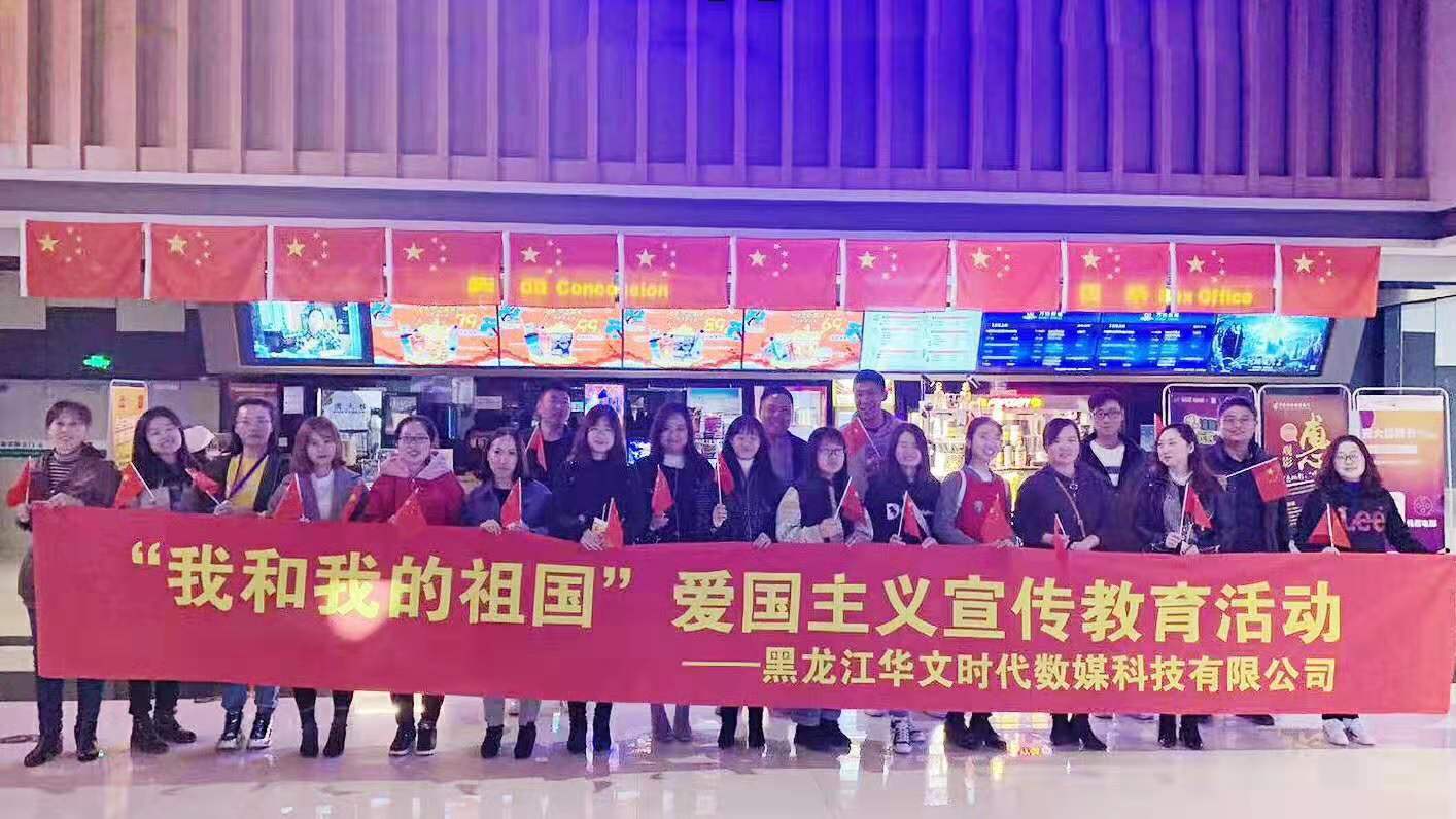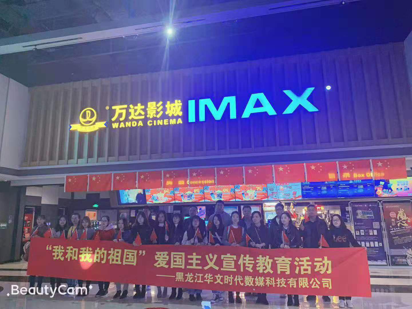 2019年10月11日下午,beat365平台官方网站数字出版专业在哈尔滨华文时代数媒科技有限公司工作的5名实习生,参加华文时代公司工会为继续深入开展“不忘初心、牢记使命”主题教育活动和为激发全体职工爱党爱国热情而组织开展的“我和我的祖国”爱国主义宣传教育活动——观影《我和和我的祖国》。我们的5位小可爱(宁彤、张贺、迟春宇、李霞、周锐)在队列中格外靓丽(你能猜出哪5位是我们的可爱精英吗)。她们在哈尔滨华文时代公司的实习从8月20日开始,将在2020年春节前结束。她们优秀,我们加油!