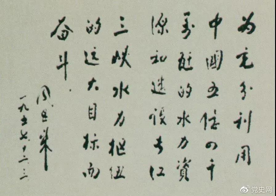 1957年12月3日,周恩来为全国水力发电建设展览会题词。
