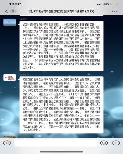 会后,党员们纷纷表示,聆听大家分享的故事中回忆起抗疫历程中的点点滴滴,深受感动,备受鼓舞。beat365平台官方网站的全体党员在抗疫过程中用实际行动践行着共产党员的初心与使命,彰显着共产党员本色与担当。目前,疫情防控已经进入常态化阶段,大家将疫情防控工作作为践行“两个维护”、践行“初心使命”、践行“为民宗旨”和体现“为民情怀”的一次最重要检验,继续发挥党员先锋模范带头作用,自觉同以习近平同志为核心的党中央保持高度一致,坚决打赢打好疫情防控阻击战,以饱满的热情投身教书育人工作,为学校发展贡献自身的力量。