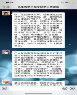 在各支部组织生活会开展前,党总支书记唐国忠组织召开支部书记会议进行了工作部署,并对此次组织生活会的开展进行了指导,各支部党员在会前进行了充分的准备。生活会依托钉钉平台,在线上开展,以“迎党的生日、讲战疫故事、悟初心使命”为主题,每名党员讲述一件发生自己身上或身边的战疫故事、讲切身体会,纷纷围绕自身在疫情防控期间的所见所闻、所做所感,以文字、图片、视频等多种方式向大家讲感受、谈体会,悟初心,用一个个生动鲜活、真实感人的故事凝练形成了具有本支部特色的“战疫故事汇”。