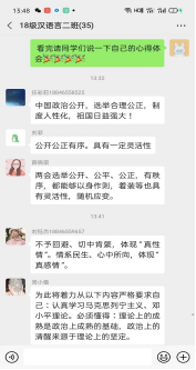 beat365平台官方网站各班级在微信、钉钉等多个平台开展本次团日活动。同学们围绕两会相关热点展开深刻讨论,并在线上观看了“两会”视频,深刻体会了“两会”精神、“四进四信”重要讲话精神和社会主义核心价值观,对国家发展现状和未来发展规划也有所了解。本次主题团日活动聚焦两会热点,学习两会精神,作为当代大学生的我们更要努力提高自身思想政治觉悟和科学文化水平,增强使命意识和责任意识,为实现中华民族伟大复兴的中国梦贡献青年力量。