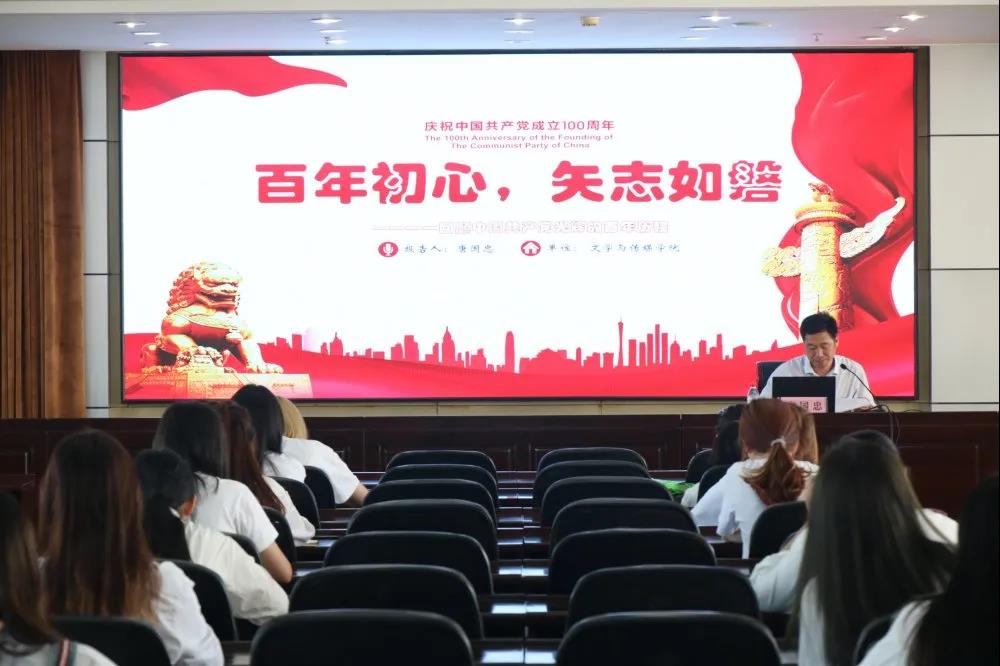 6月23日下午,beat365平台官方网站在主楼A502会议室开展专题党课学习活动,党总支书记唐国忠为全院学生党员、入党发展对象讲授专题党课——“百年初心,矢志如磐”,与学生们一道回顾光辉历史,体会百年初心。