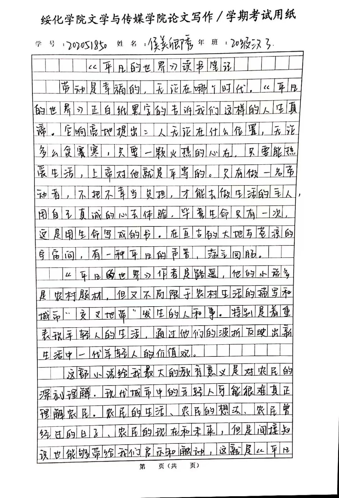 2020级汉语言文学三班侯美卿秀