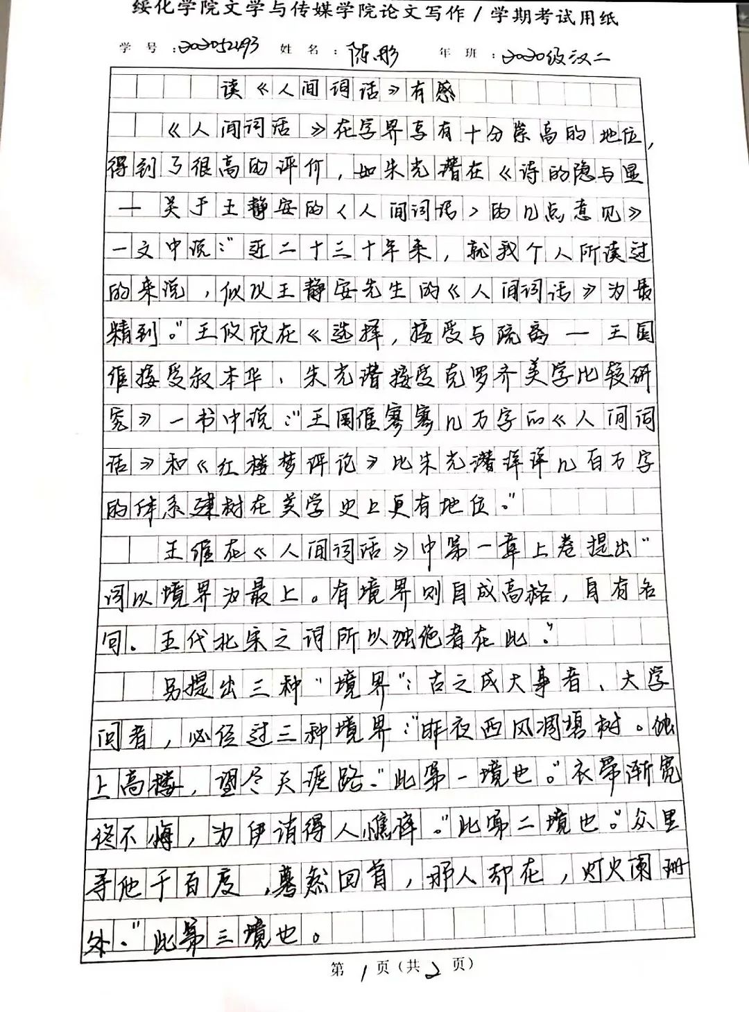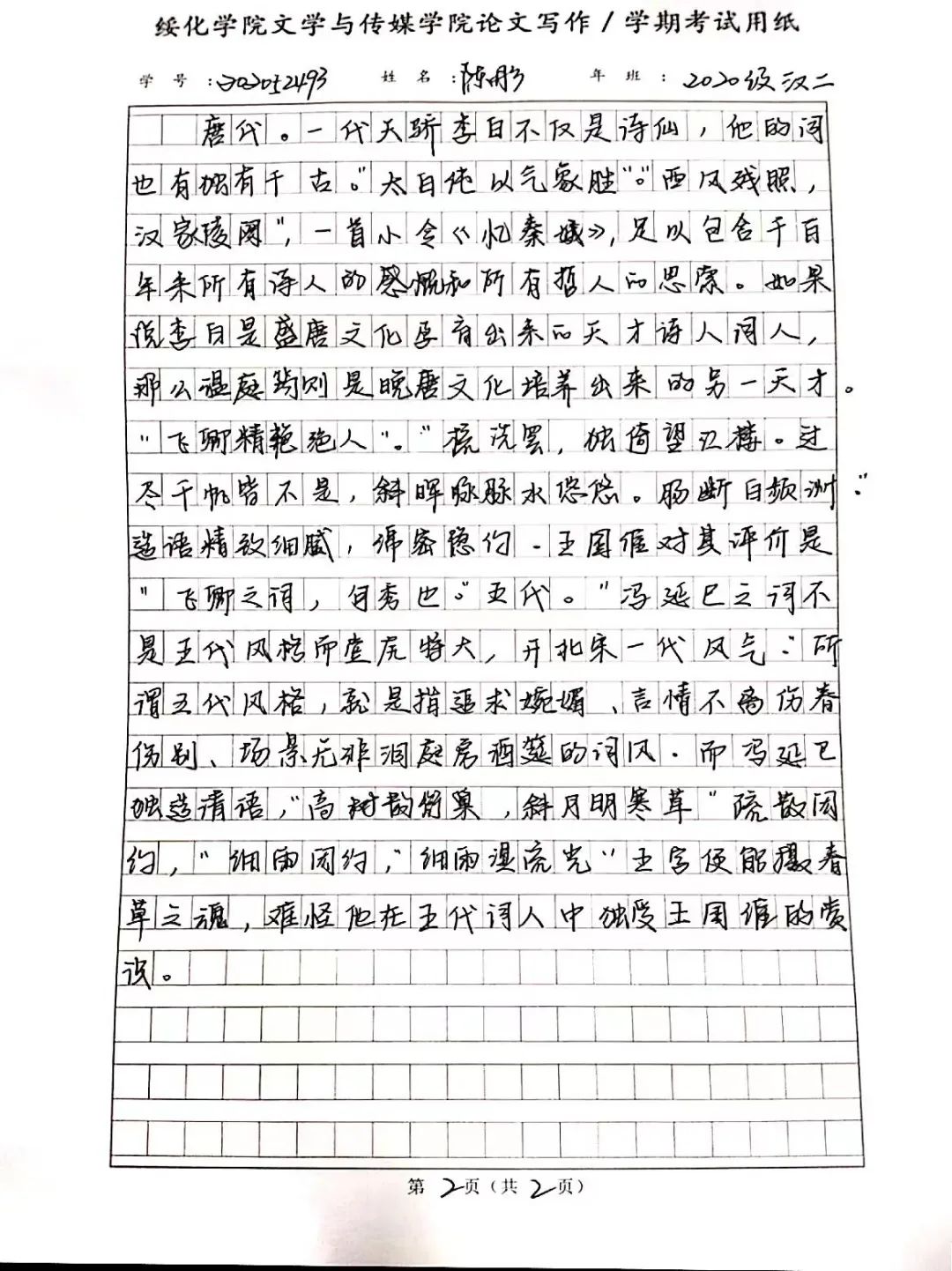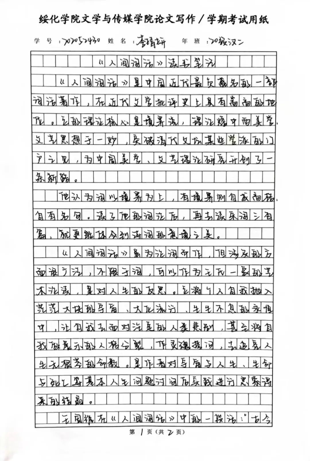 2020级汉语言文学二班李婧妍
