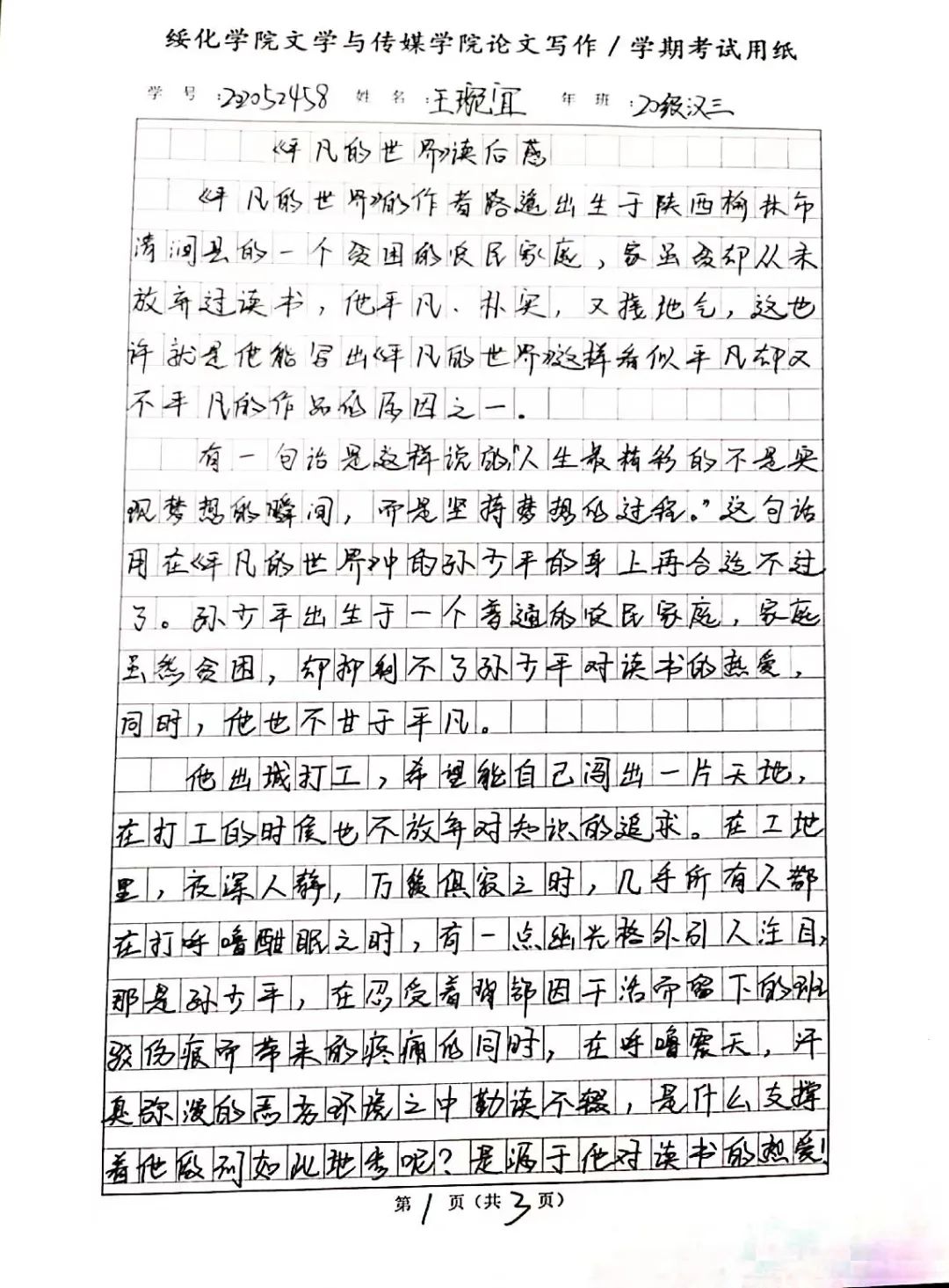 2020级汉语言文学三班王婉宜