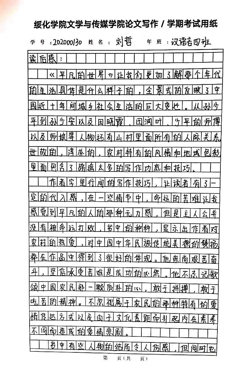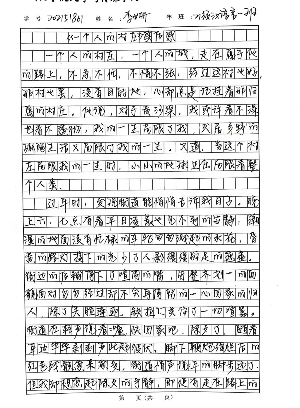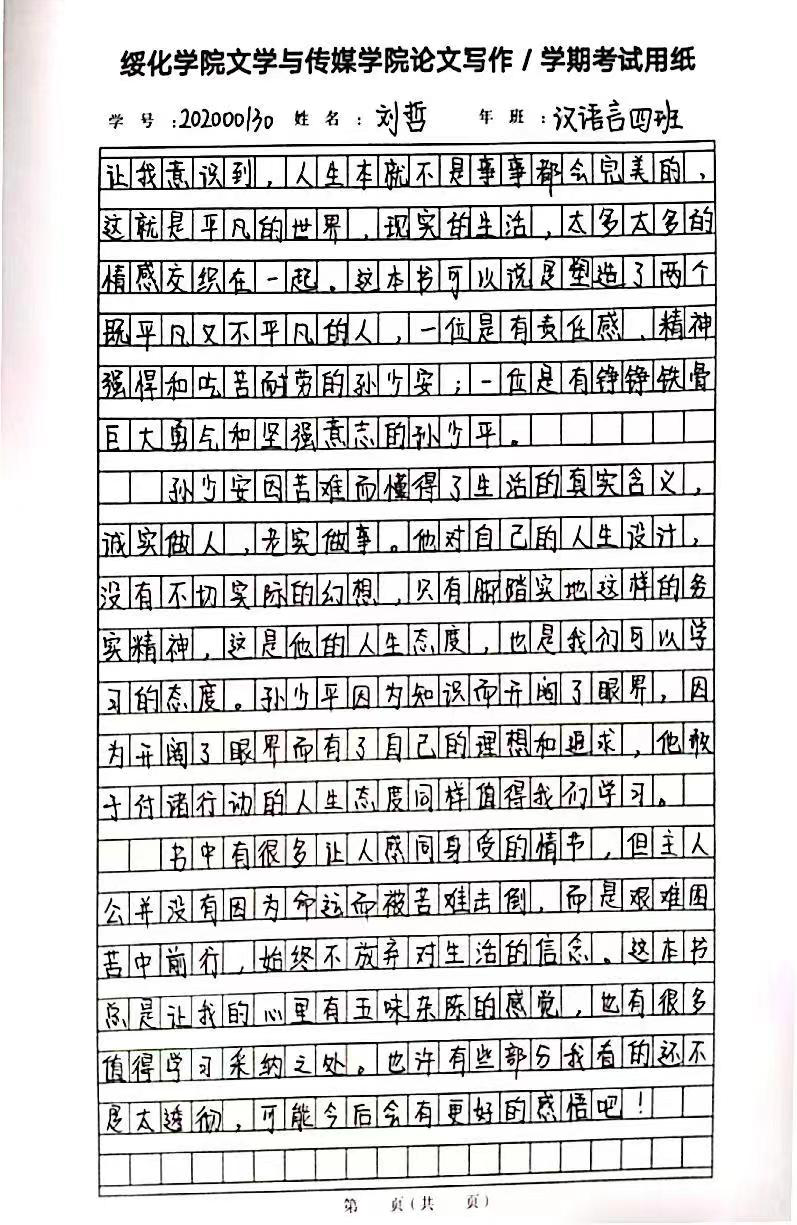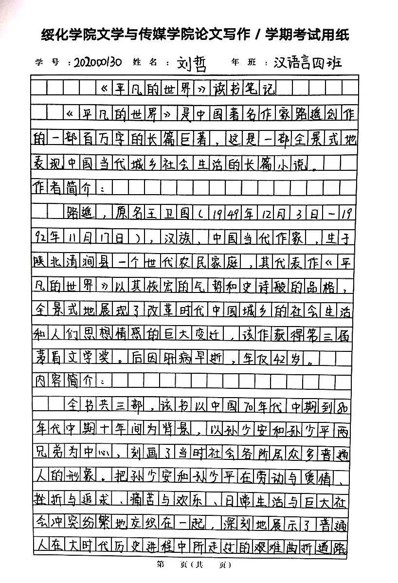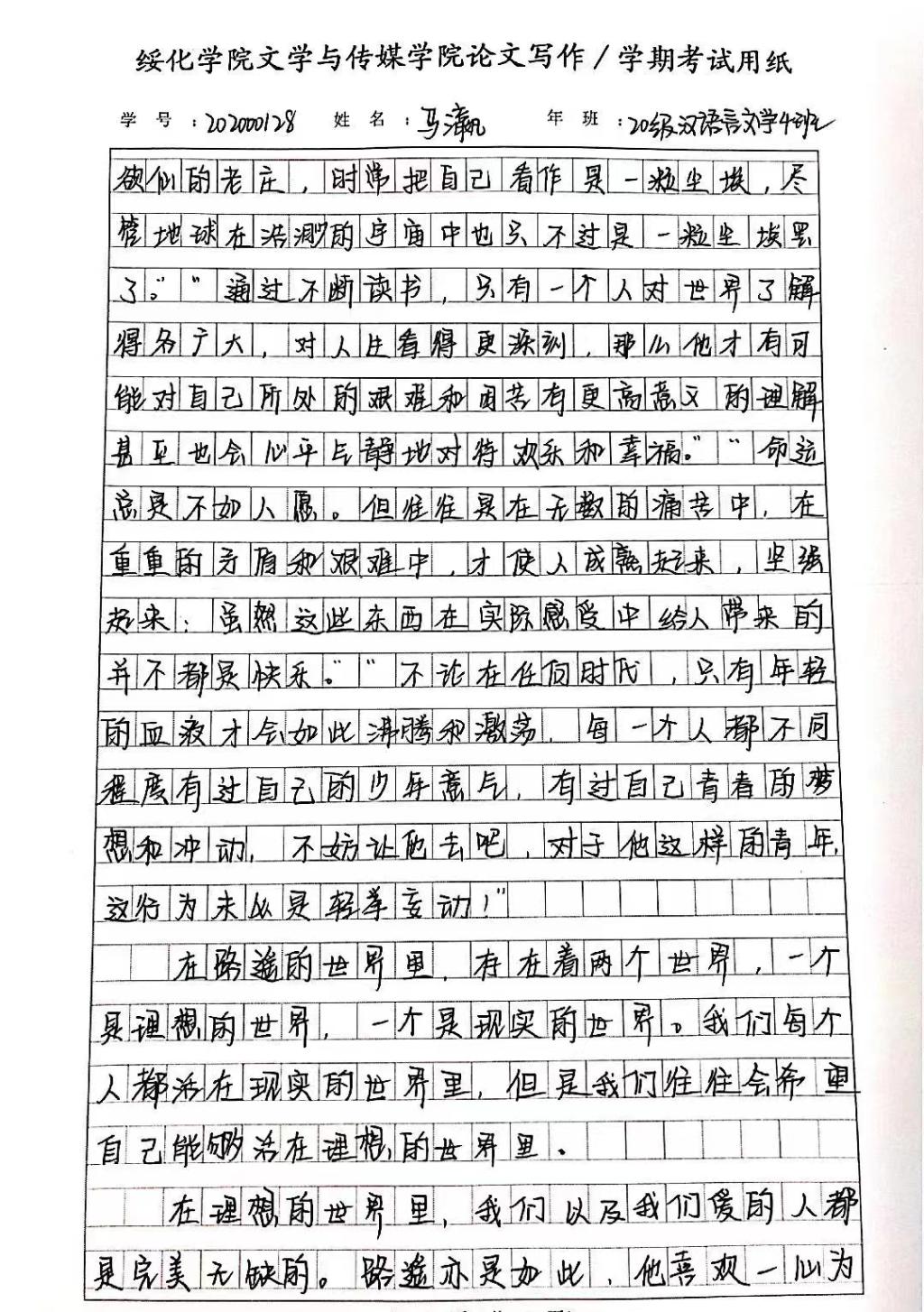优美的文笔让人流连,美好的故事引人遐想。喜迎二十大胜利召开,beat365平台官方网站开展”“品读文学,书香共赏”活动,为优秀的作品提供平台,让飞扬的文采得以挂靠。食髓知味,落笔成文,这里是放飞思绪的一方天地,这里是共话文学的青春殿堂,我们怀言引玉,我们邀你共赏。2020级汉语言文学四班刘哲