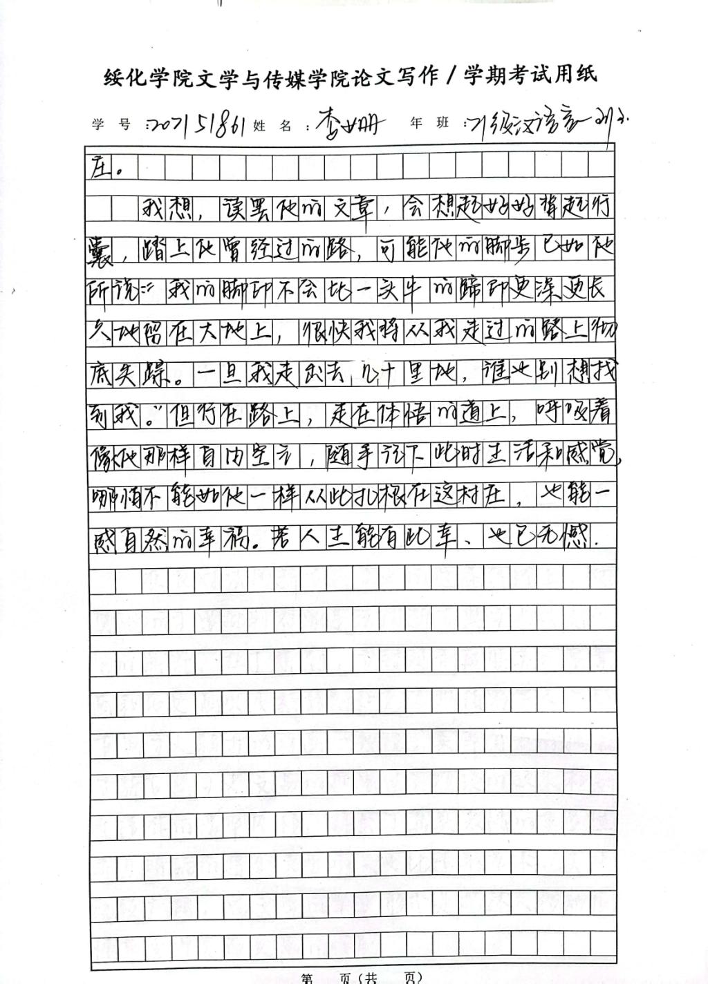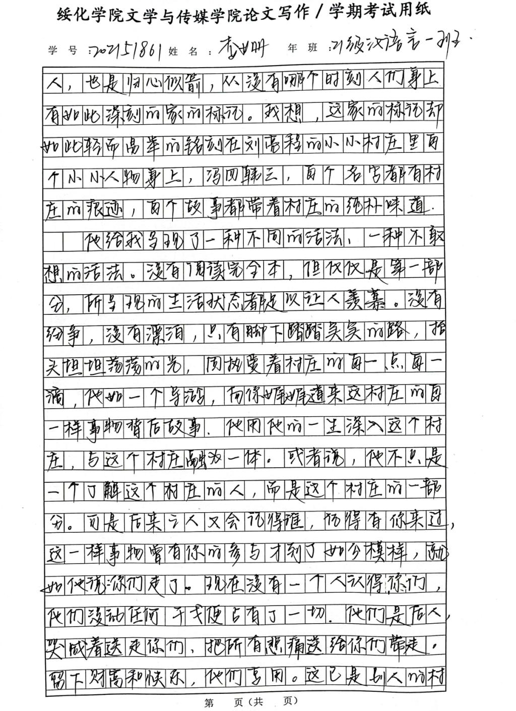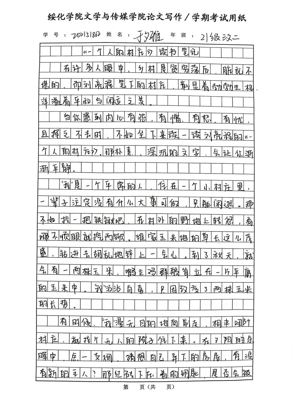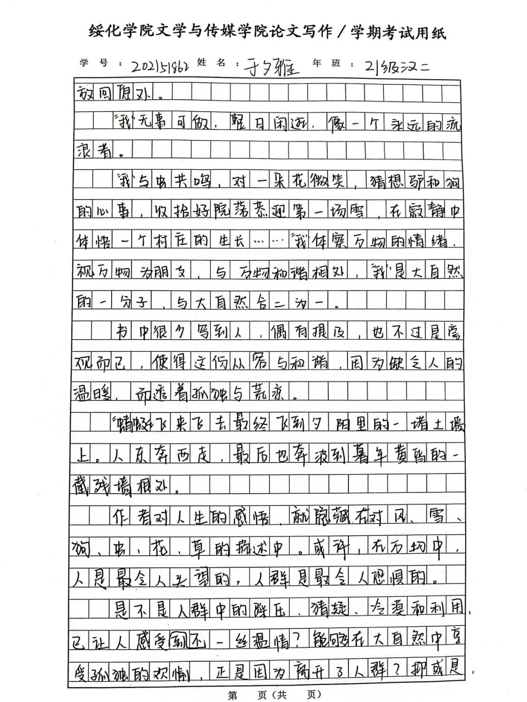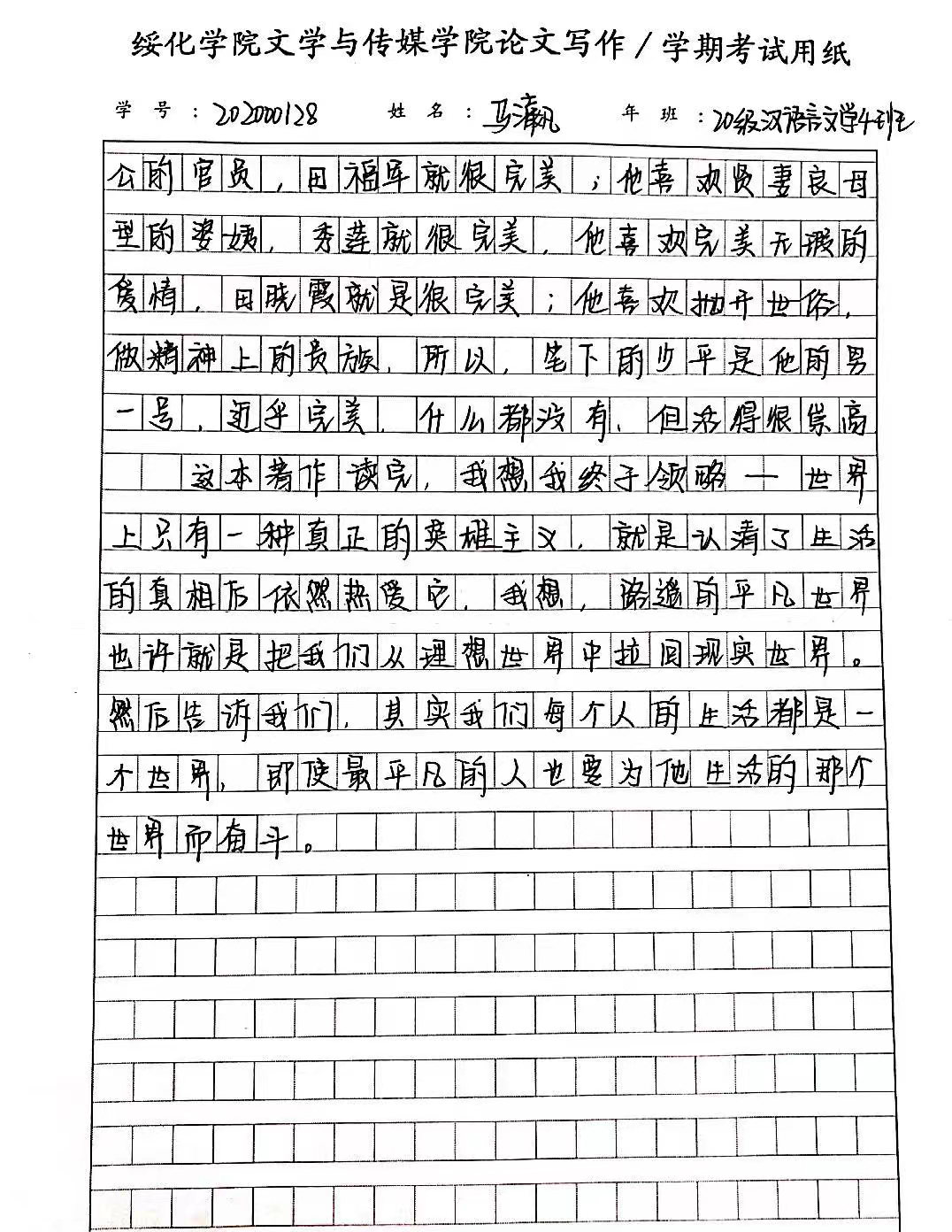 优美的文笔让人流连,美好的故事引人遐想。喜迎二十大胜利召开,beat365平台官方网站开展”“品读文学,书香共赏”活动,为优秀的作品提供平台,让飞扬的文采得以挂靠。食髓知味,落笔成文,这里是放飞思绪的一方天地,这里是共话文学的青春殿堂,我们怀言引玉,我们邀你共赏。2020级汉语言文学四班刘哲