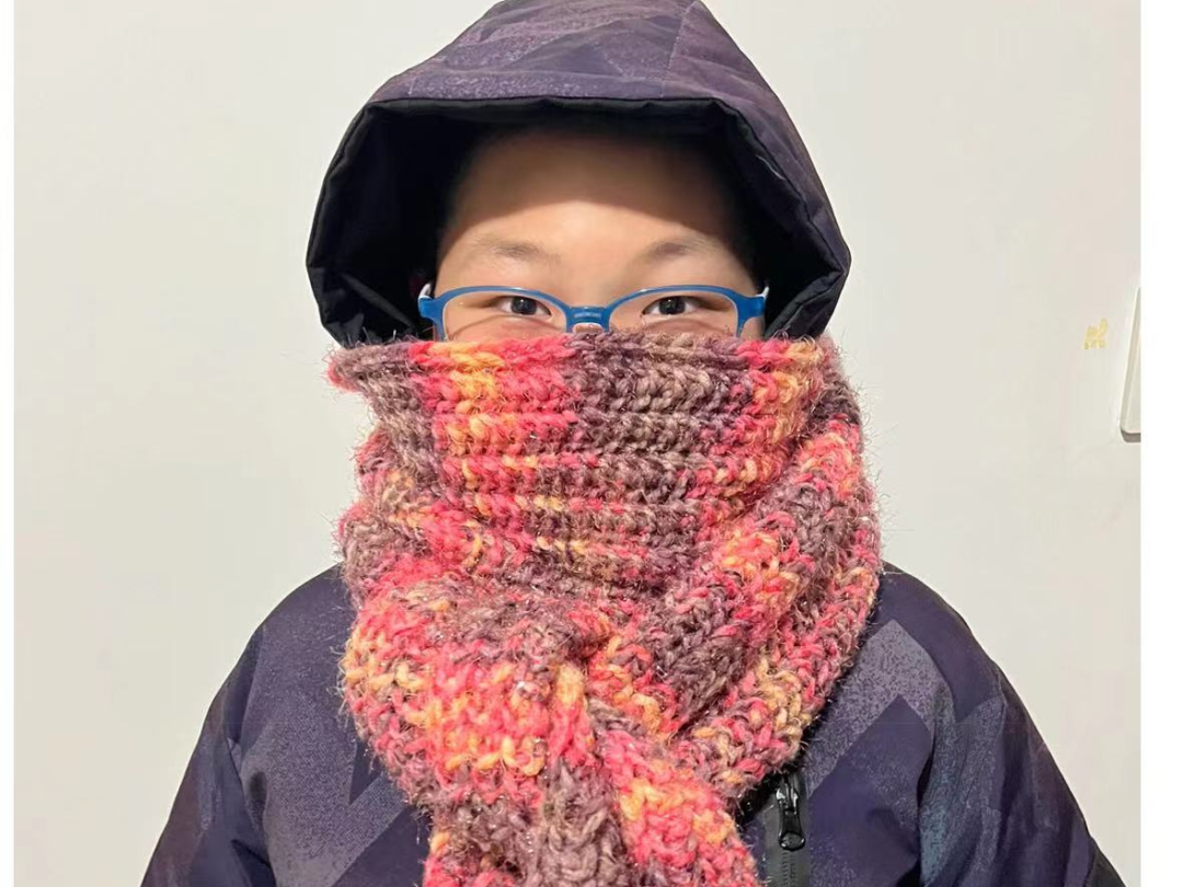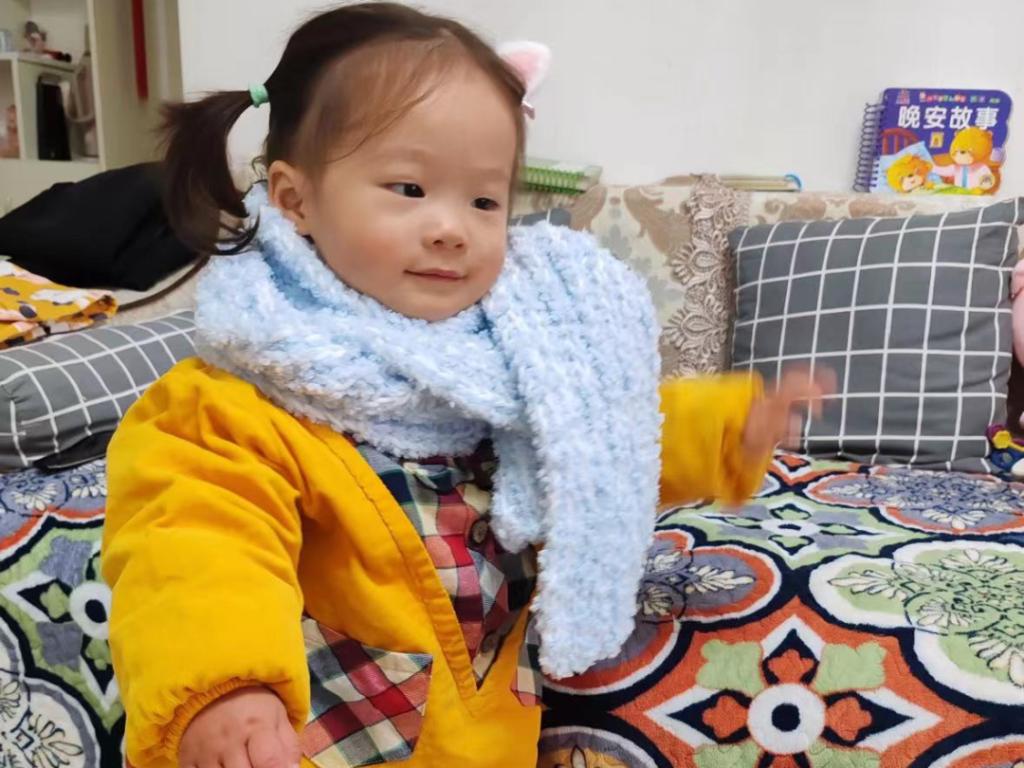 王睿璿同学的每一寸关怀、每一分爱心都被细细的缠绕在这写棉线上,她的每一个愿望、每一幕憧憬都被稳稳的渗透进这条围巾里。眼前总是浮现留守儿童将这条围巾围在颈上时幸福的笑容,她也由此微笑。
