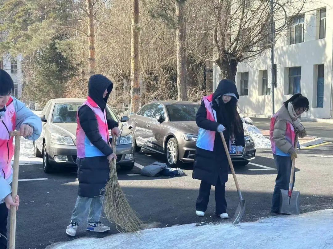 除此之外,学院还组织志愿者清扫汇文楼前积雪,志愿者们不畏严寒,齐心协力,保障了校园道路的畅通和安全,不仅强健体魄,更体会到了劳动的快乐和助人为乐的意义。