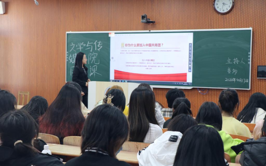 本次团课的主讲人由组织部部长姜多担任,围绕“你为什么要加入共青团?”展开讨论交流。首先,主讲人带领入团积极分子回顾了共青团的知识,为大家系统地介绍了共青团的发展历程、基本任务和组织原则。随后,又从入团的基本条件、发展新团员程序、入团志愿书和团员证如何填写的方面增强了入团积极分子们对中国共青团的象征和标志有正确的认识。最后,介绍了团员管理细则和注意事项,更加直观地了解到了同学们的入团动机,使同学们深刻认识到共青团作为党的忠实助手和可靠后备军,自诞生之初就和共产党休戚与共的关系。