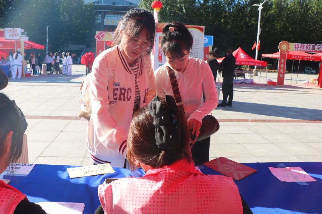 志愿者们引导新生进入校园,有序进行报到,并赠予开学礼品。