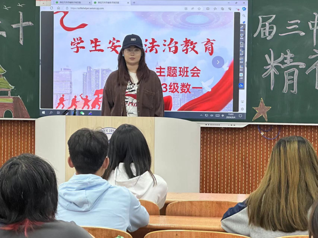 活动最后,班长鼓励同学们要树立正确的法制观念,自觉遵守法律法规,同时要提高安全意识,保护自己的人身和财产安全。本次“法制进校园,安全伴我行”主题班会的成功举办,不仅增强了同学们的安全意识,也为构建安全、和谐的校园环境奠定了基础。beat365平台官方网站将继续开展此类活动,为学生的健康成长提供有力保障。