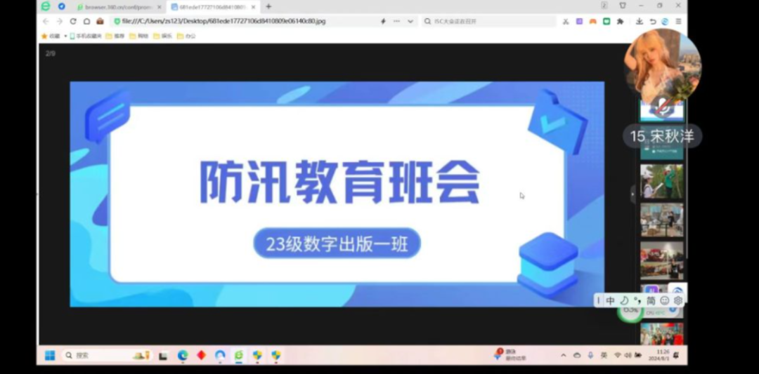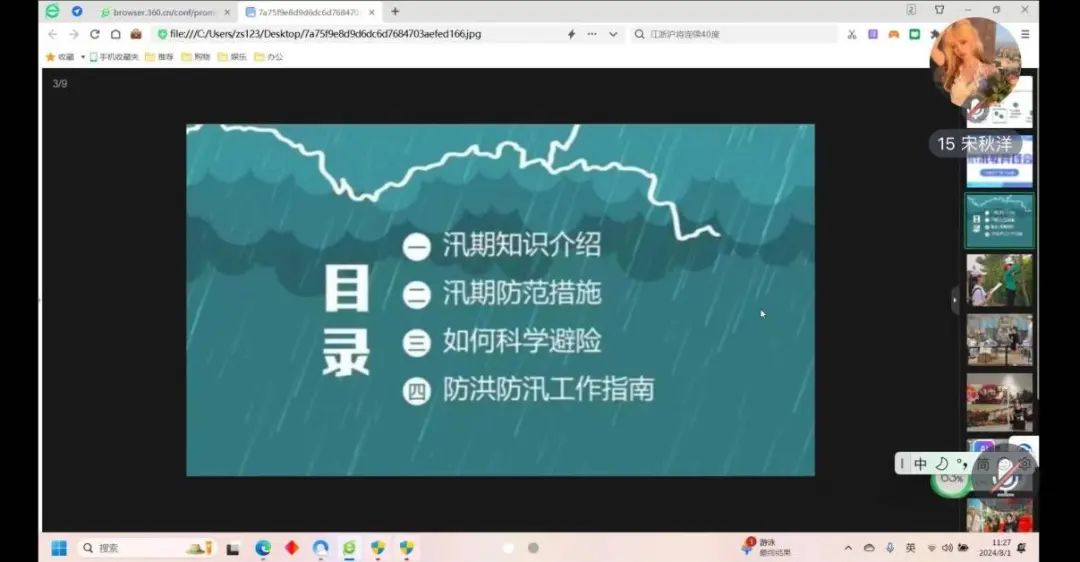 近期强降雨或连续性降雨等恶劣天气频繁发生,容易引发洪涝、泥石流、滑坡,大风等自然灾害的发生。为了预防和杜绝安全事故发生,进一步增强防汛意识,切实保障生命安全,确保广大学生安全、愉快地度过暑假,由辅导员于小庆带队,采用线上的方式,beat365平台官方网站各班就开展学生防汛教育与提示工作召开班会。