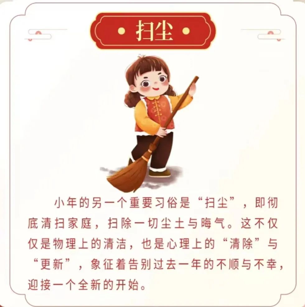 相传,在古代中国,有一种名为“年”的怪兽,每年除夕之夜都会来到人间作祟。为了抵御这只怪兽,人们会在小年这一天进行大扫除,清理家中的灰尘和垃圾,以扫除晦气和不祥之物。这也是为什么现在人们在过小年之前要彻底打扫家里卫生,以期迎接新年的好运和吉祥。