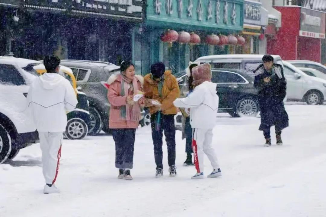 活动开始,同学们深入社区,分发了本次活动的主题宣传单,并向路人介绍了此次活动的意义。一粥一饭来之不易,要从点滴做起,从餐饮开始,将口号变为行动,将行动化为习惯,礼貌消费、节约用餐,养成勤俭节约的良好习惯。虽然天气寒冷,雪花纷飞,但同学们不畏严寒,齐心协力共同完成了此次活动。