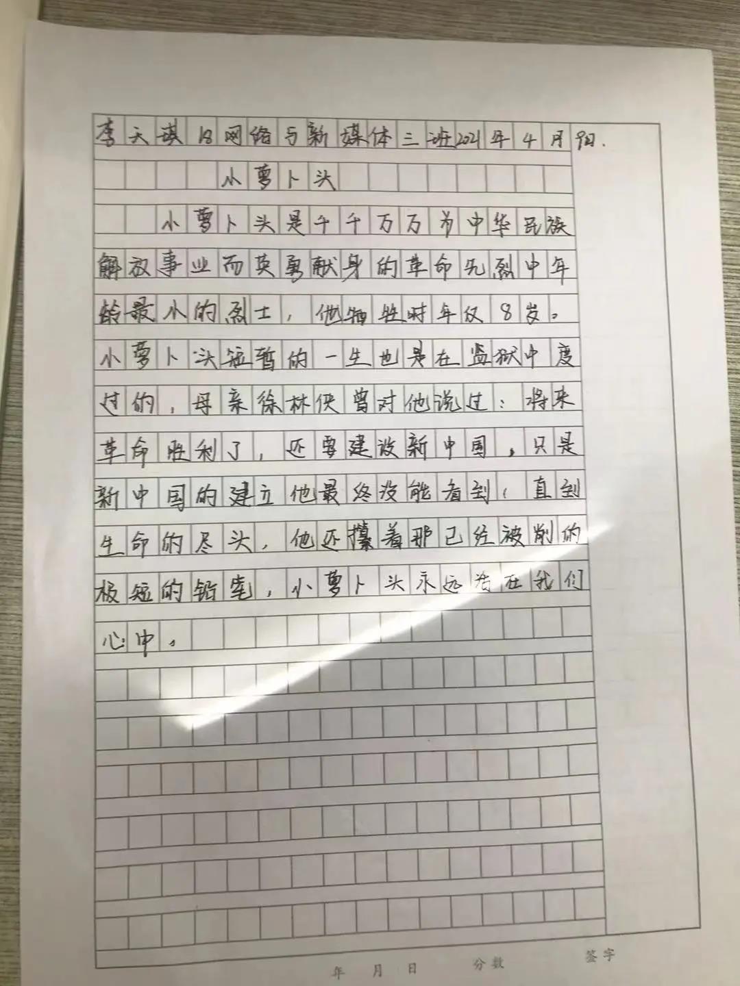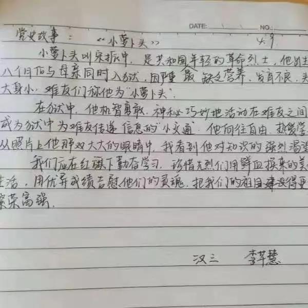 今天,在beat365平台官方网站“诵读党史”晨讲活动中分享了这个故事,让我们一起来看看同学们对于“小萝卜头”事件的理解吧!