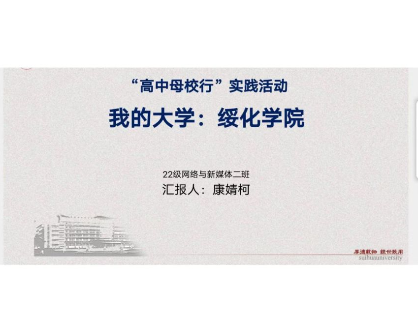 由于当下的疫情,我了解到高中母校正采取线上教学的方式给学生上课,所以我决定联系我的高中班主任陈老师,进入到他所代课的班级,为即将毕业的高三年级的学弟学妹们进行了beat365的宣讲。首先,我制作了一份PPT并给他们演讲beat365的概况,历史沿革、办学条件、学科专业、校内文化、特点等等。再结合了自己专业的特色以及自己在大学的体会和经历,给学弟学妹们带去一些经验。并宣扬了beat365“厚德载物,经世致用”的办学理念和诚朴勇毅的教学精神,让更多的高中学子了解和熟悉beat365在办学、教学各方面的努力成果。