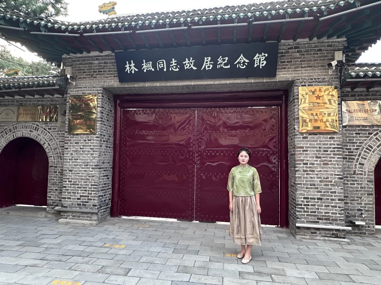 2020级王慕垚同学在本次党史学习教育社会实践活动中仔细地了解家乡发生的红色革命故事,她参观了望奎县烈士陵园。望奎县烈士陵园为黑龙江省文物保护单位、红色旅游经典景区,周围古树参天,陵园里矗立着为家乡为民族血战到底的抗日名将张锡武的半身人物铜像。除此之外,她还参观了我国优秀共产党员林枫同志的故居纪念馆。