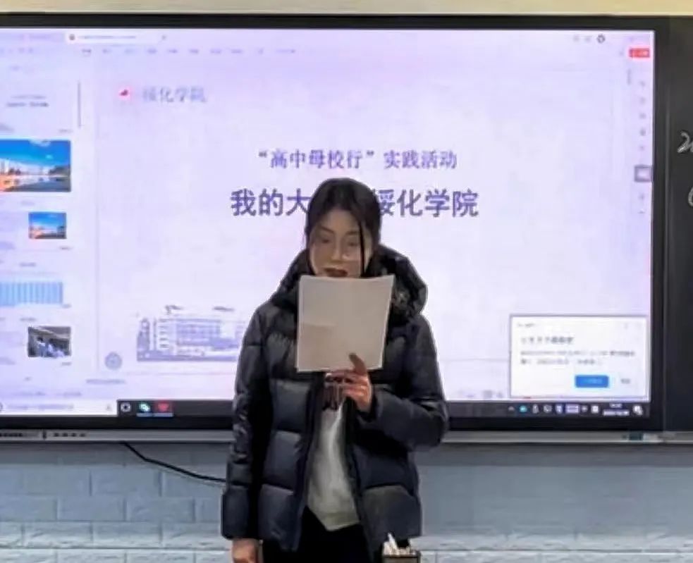 他们课堂上是严厉的老师,课后却是同学们的朋友,战友。三年的每一句教诲,每一句担忧,每一句叮咛,都是对我们奔赴美好理想的期待与祝福。如今我也成为了一名大学生,成为了学弟学妹口中的学姐,成了老师口中的那届学生,那间教室又坐满了,只是再也不是我们了。通过本次活动,我意识到了时间的飞速流逝和我们应该奋楫扬帆把握机遇,以免毕业后留下遗憾。