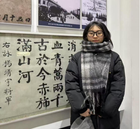 1月14日,叶智禄同学来到了东北烈士纪念馆,她沿着展线缓缓前行,泛黄的照片、陈旧的书信、锈迹斑斑的武器,以及烈士们生前用过的物品,都将她带入了那段烽火连天、艰难困苦的岁月。在纪念馆中,她仿佛看到了年轻的战士们,眼中闪烁着坚定的光芒,毅然奔赴战场,无惧生死;看到了地下工作者们,在黑暗中默默坚守,为传递情报出生入死;看到了无数无名英雄,用自己的血肉之躯,筑起了捍卫祖国和人民的钢铁长城。