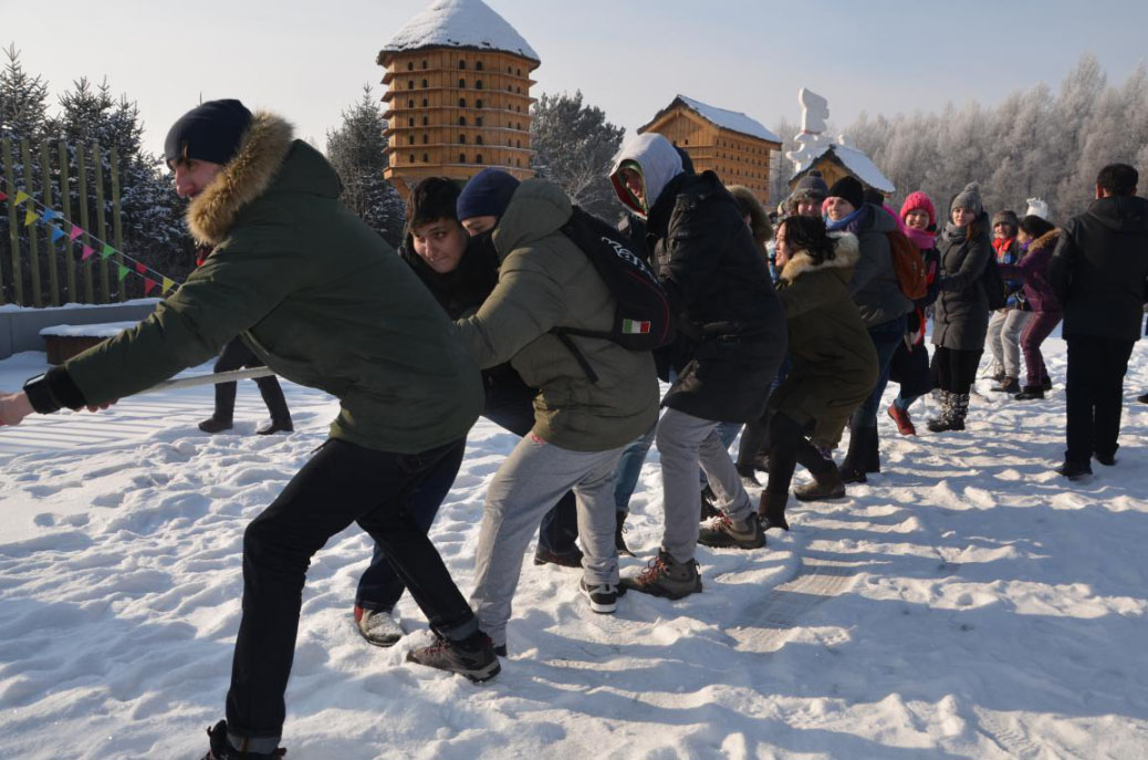 来到“赏冰乐雪”景区,留学生们亲身体验了抽冰嘎、冰爬犁、冰壶等冰上游戏,情不自禁地说:我们很愉快!我们很喜欢!驻足晶莹剔透、姿态纷呈的雪雕前,大家纷纷拍照,流连忘返。