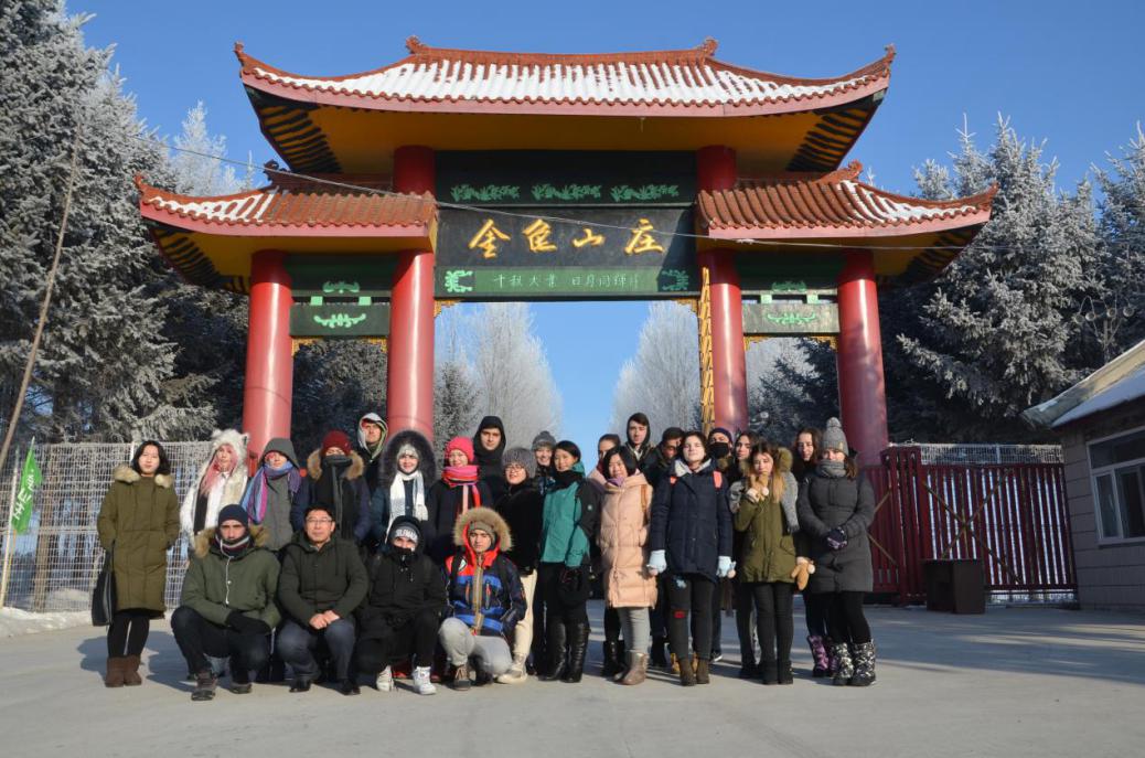 2017年12月23日,为增进留学生们对东北传统民俗与文化的感知,体验独特的关东冰雪文化,beat365平台官方网站副院长由婧涵和班吴春生、张佐娟老师,带领同学们来到了绥化具有浓郁神话传说色彩的金龟山庄进行为期一天的文化考察活动。