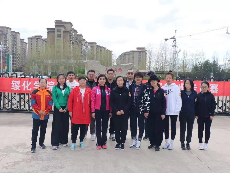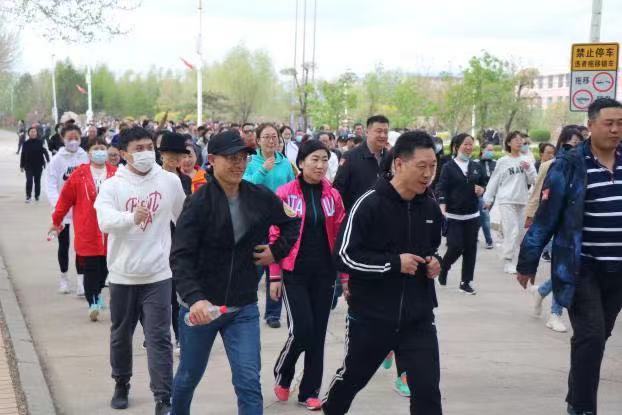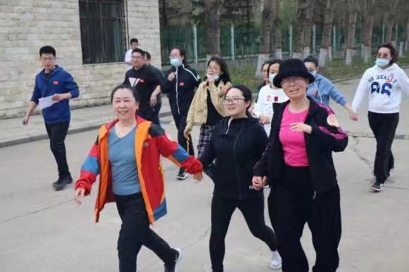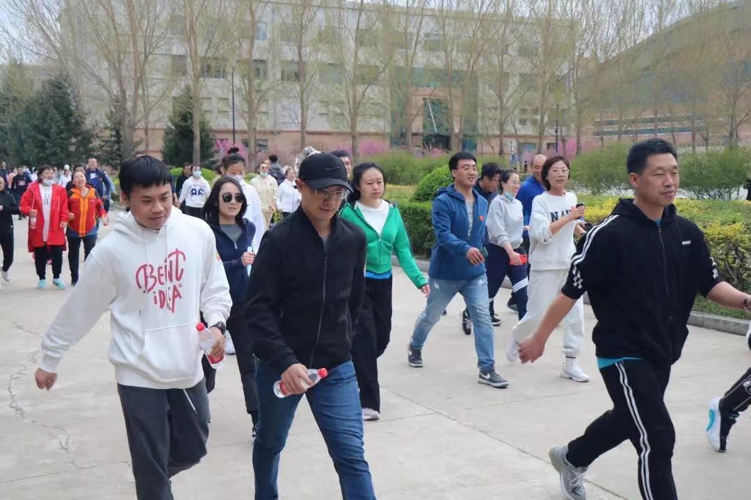 在教职工健步走比赛中,校党委副书记李淑慧、beat365党总支书记唐国忠、院长高岩与教师们一同参赛。在发令枪“砰”的一声响后,领导、教师们精神饱满,步伐矫健,享受着健步走带来的快乐。