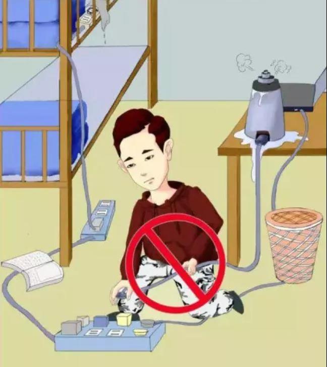 做好消防安全,严禁使用违章电器、热得快、电饭锅、电水壶、电热毯、电热水袋等大功率危险电器,及时制止其他同学使用类似威胁大家安全的电器;严禁宿舍存放酒精、汽油等易燃易爆物品;小心保管含酒精类防护物资(如免洗消毒凝胶、免洗液、酒精纸巾等),以防火灾发生;不在宿舍内私接电源和改动电线路,离开宿舍前切断所有电源,拔掉所有电源插头;电源接线板不要放在纸箱、易燃物品上面;衣物、报纸等易燃物不要堆放在插板上;电源不与床架等金属物相接触;禁止在宿舍内使用明火、易燃可燃性液体等;禁止在宿舍吸烟;禁止在消防通道内堆放杂物或擅自封闭消防疏散通道。贵重物品注意保管,应随身携带,不要随意放在宿舍。养成出入宿舍随手关门的习惯,溜门行窃的小偷可能就在你转身的一刹那溜进你的宿舍作案。