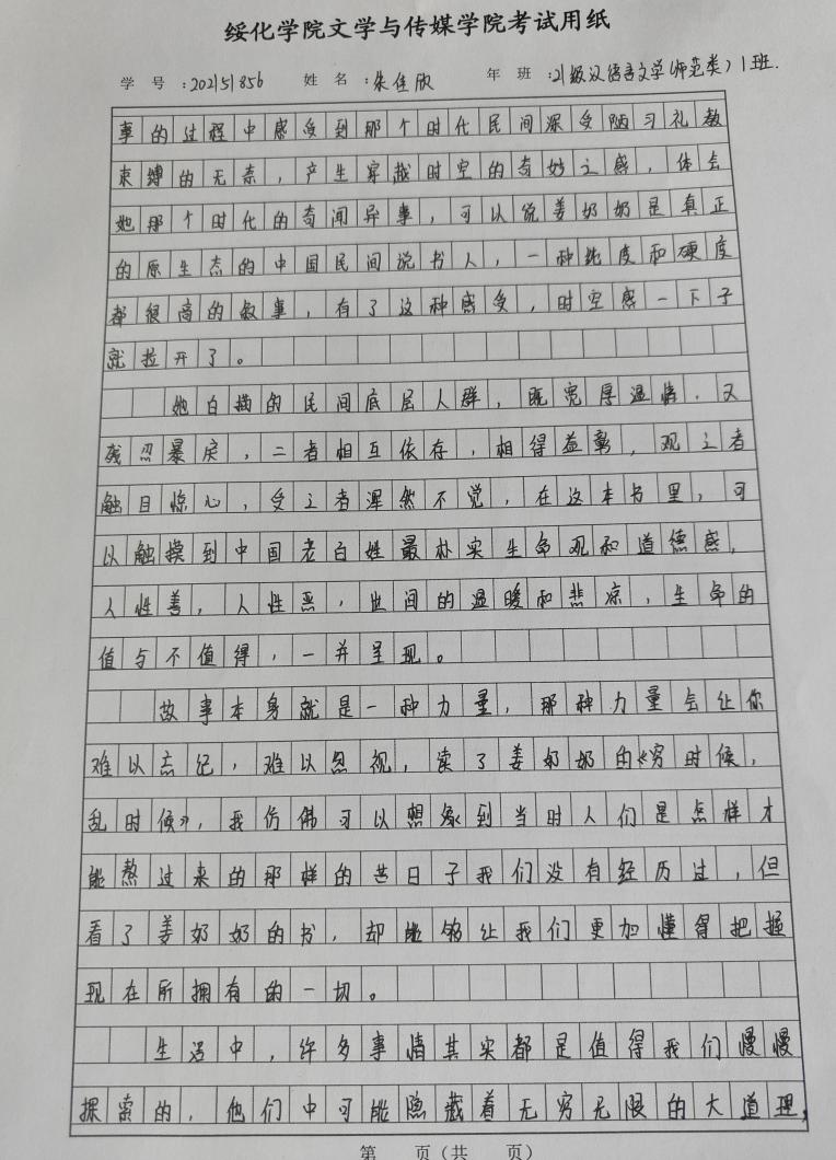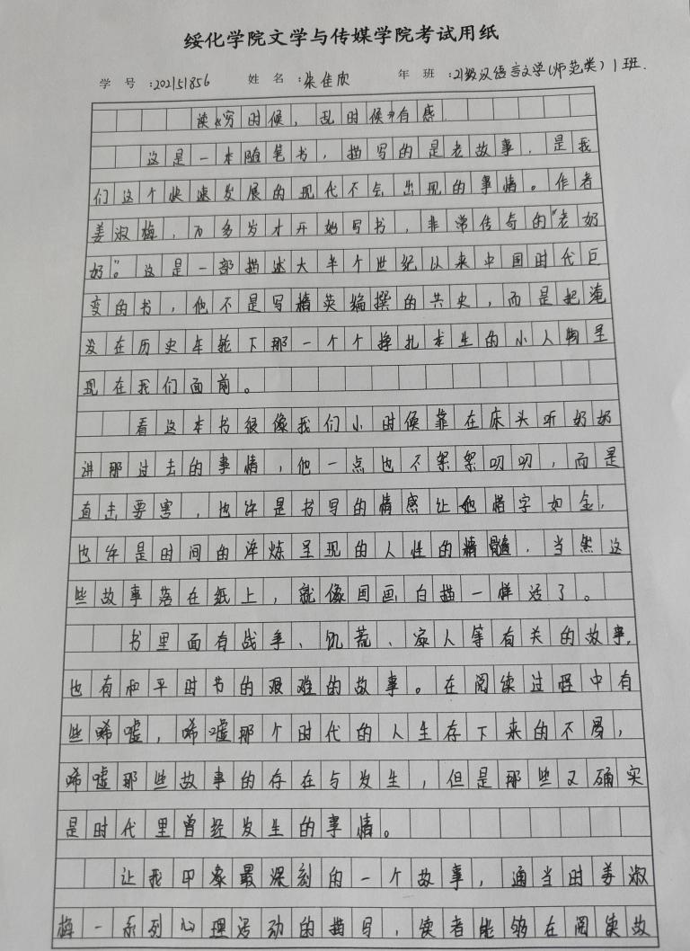 2021级汉语言文学一班朱佳欣