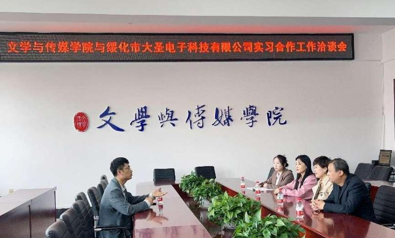 同日下午两点,绥化市大圣电子科技有限公司(饿了么)来beat365就实习合作内容举办工作洽谈会,与会人员有绥化市大圣电子科技有限公司(饿了么)总经理张明星、beat365平台官方网站由婧涵院长、王子鸣书记、汪淑双副院长、数字出版专业负责人柳鑫苗老师。